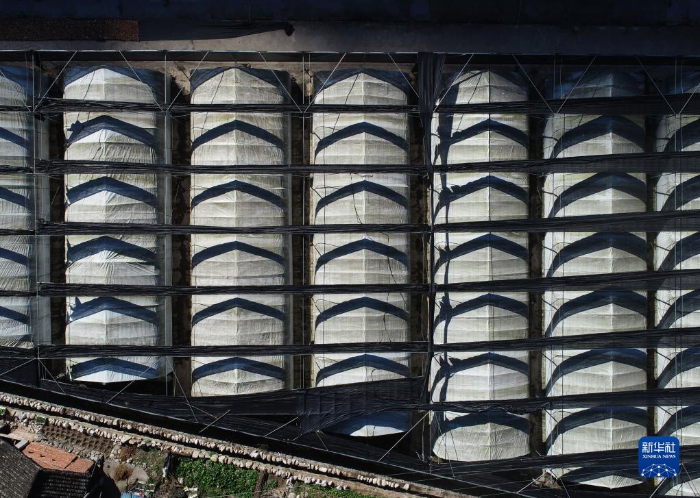 這是11月17日拍攝的位于寧陜縣城關(guān)鎮的一處香菇種植園區(無(wú)人機照片)。