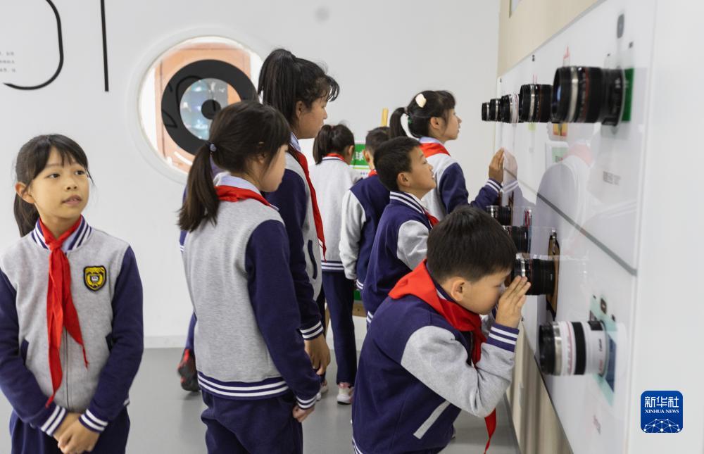 11月17日,在成都市迎賓路小學(xué)健康空間,學(xué)生感受視力疾病造成的視覺(jué)效果。