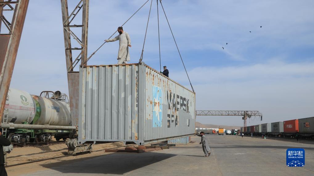 11月16日,在阿富汗西北部赫拉特省托爾貢迪口岸,工作人員卸載中國援阿抗震救災物資。
