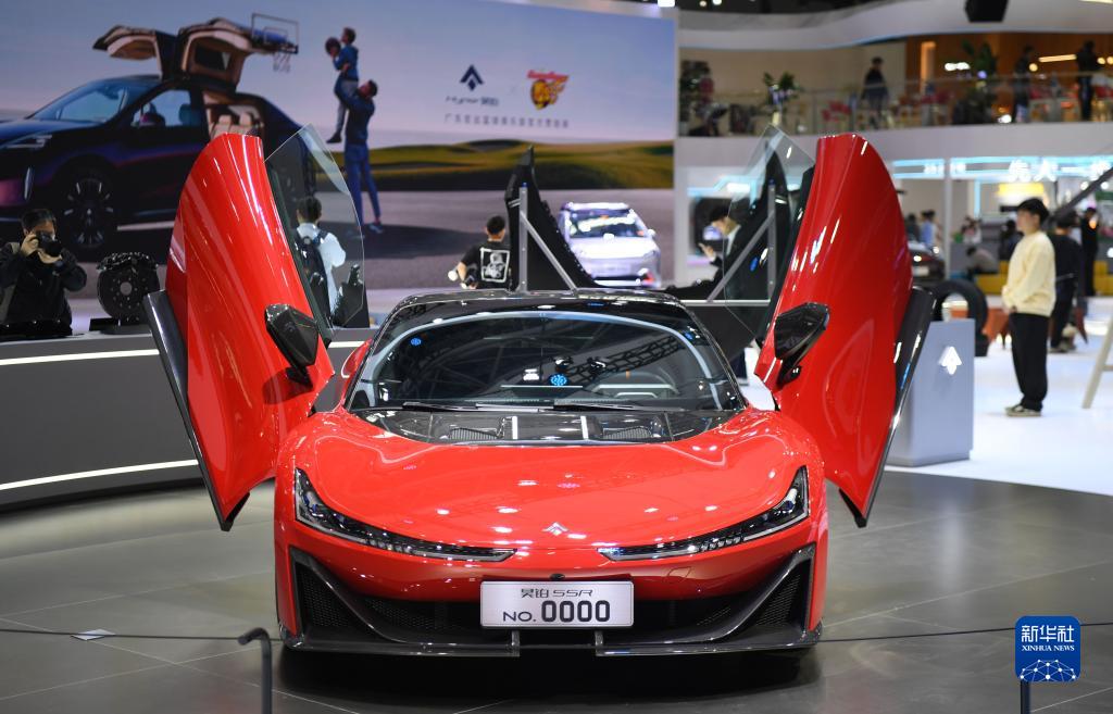 11月17日在廣州車(chē)展上拍攝的廣汽埃安旗下的新能源超跑昊鉑SSR。