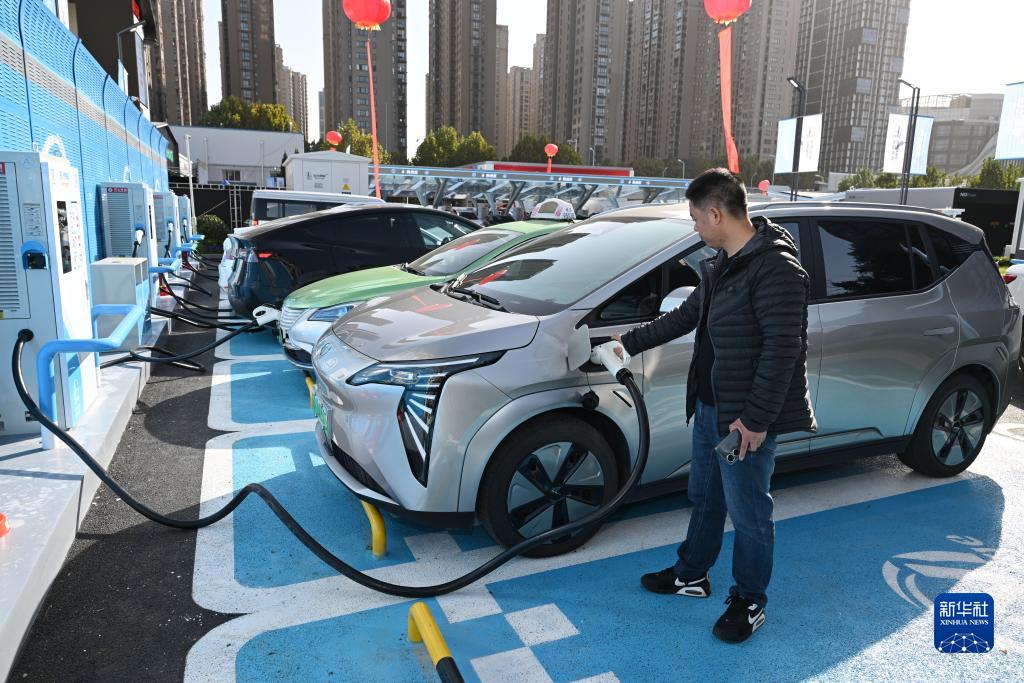 11月17日,市民在安徽石油大眾綜合能源站內為新能源汽車(chē)充電。