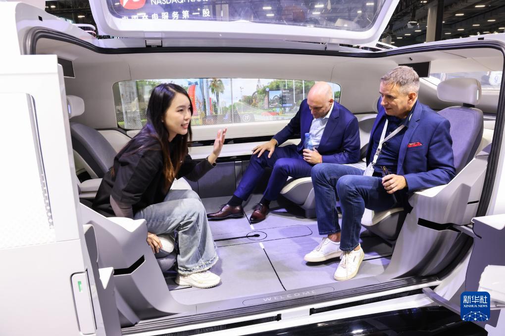 11月17日,參觀(guān)者登上滴滴自動(dòng)駕駛的未來(lái)出行服務(wù)概念車(chē)Neuron進(jìn)行體驗。