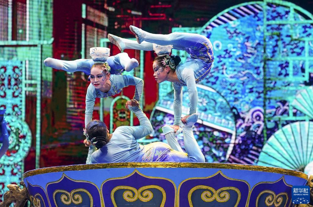 這是四川省遂寧市雜技團帶來(lái)的雜技《景泰藍的遐想——頂碗》(11月17日攝)。
