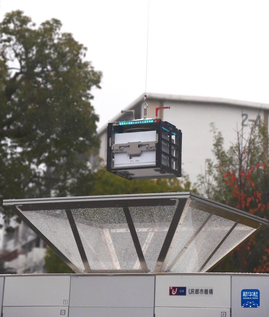 11月17日,在日本川崎市,空中索道機器人在面向媒體的試驗說(shuō)明會(huì )上演示將商品放入取貨柜。