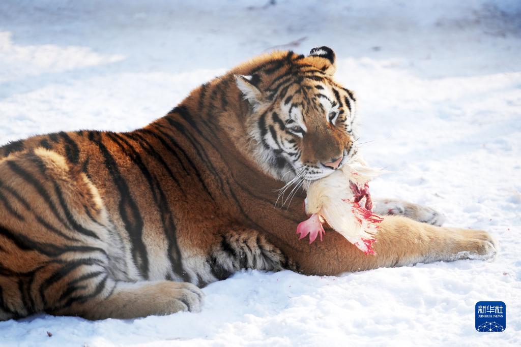 冰城哈爾濱市近日迎來(lái)數次降雪天氣,在黑龍江東北虎林園,散放區的東北虎在雪地活動(dòng)。