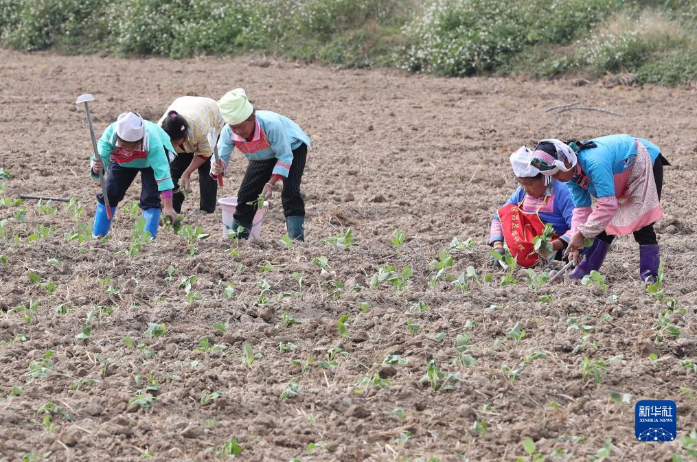 11月18日,村民在貴州省黔東南苗族侗族自治州榕江縣車(chē)江萬(wàn)畝大壩移栽油菜苗。