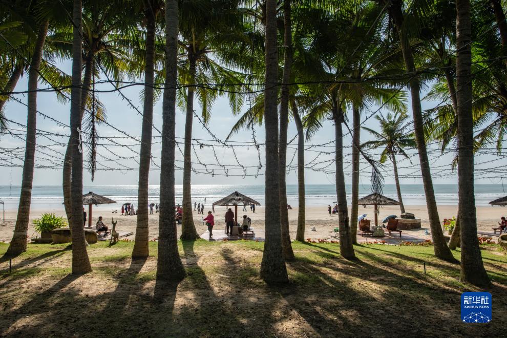 11月18日,游人在海南省瓊海市的博鰲海濱游玩。