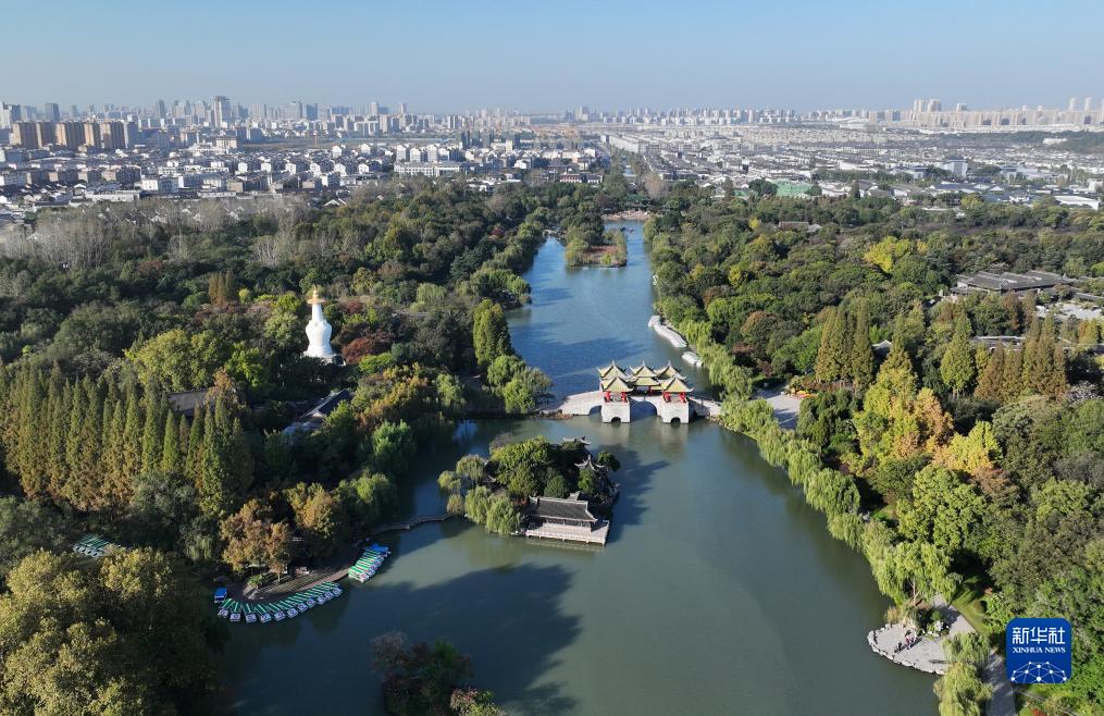 11月17日拍攝的江蘇揚州瘦西湖風(fēng)景區景色(無(wú)人機照片)。