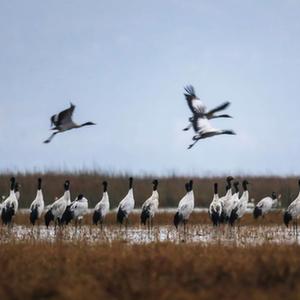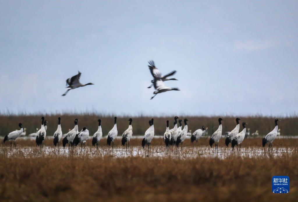 千余只黑頸鶴飛抵草海越冬