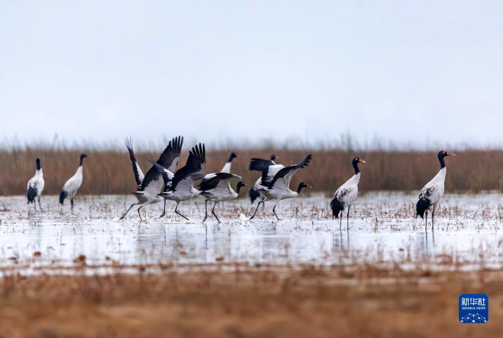入冬以來(lái),貴州省威寧彝族回族苗族自治縣草海國家級自然保護區陸續迎來(lái)越冬黑頸鶴。據草海國家級自然保護區管理委員會(huì )最新監測數據顯示,截至11月18日,越冬黑頸鶴數量已超1500只。