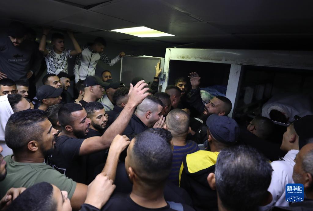 11月18日,在約旦河西岸城市納布盧斯的一家醫院,巴勒斯坦人送別在沖突中遇難的親屬。