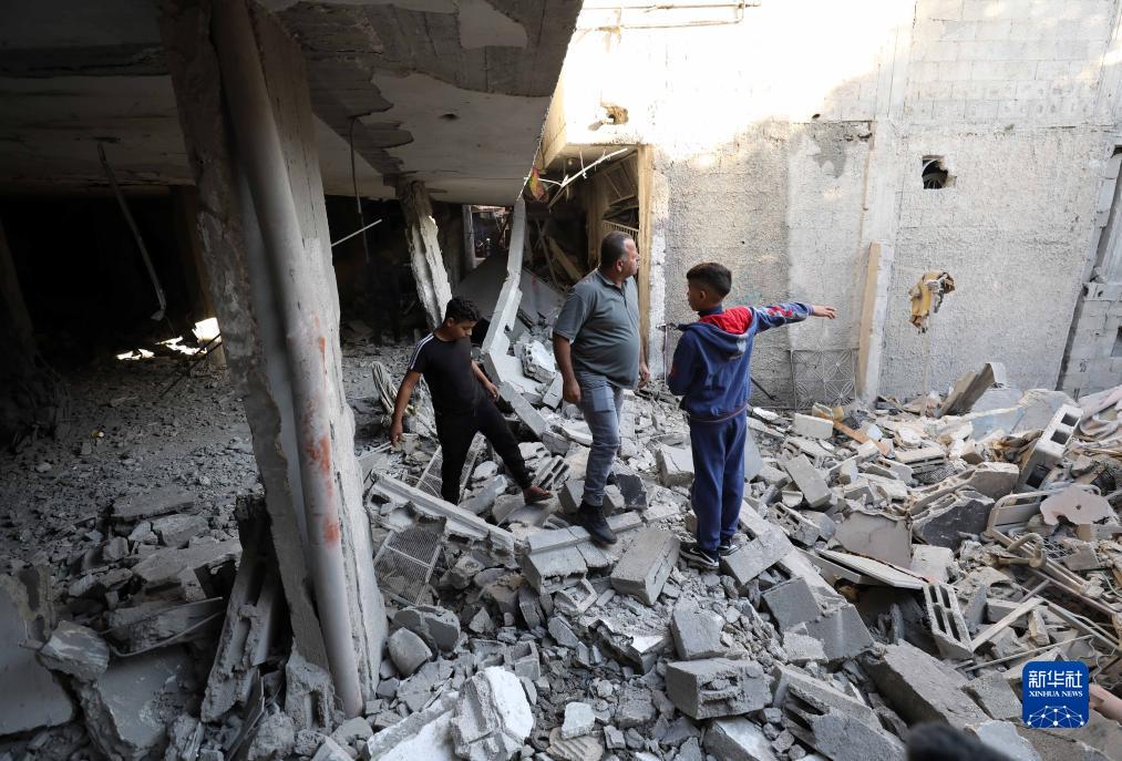 11月18日,在約旦河西岸城市納布盧斯的巴拉塔難民營(yíng),巴勒斯坦人查看沖突后的受損建筑。