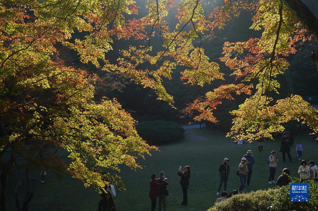 游人在廬山植物園觀(guān)賞楓葉(11月18日攝)。