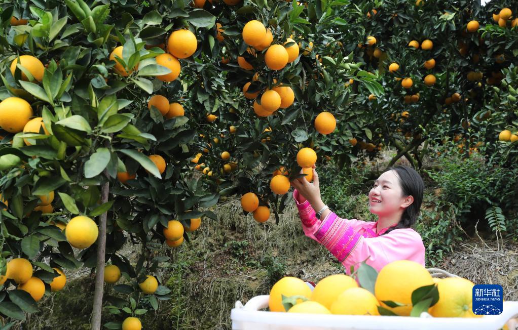 連日來(lái),貴州省黔東南苗族侗族自治州榕江縣2.6萬(wàn)畝臍橙進(jìn)入采摘季,員工忙著(zhù)采摘、打包、搬運臍橙,果園一派忙碌景象。