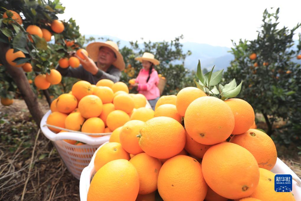 連日來(lái),貴州省黔東南苗族侗族自治州榕江縣2.6萬(wàn)畝臍橙進(jìn)入采摘季,員工忙著(zhù)采摘、打包、搬運臍橙,果園一派忙碌景象。