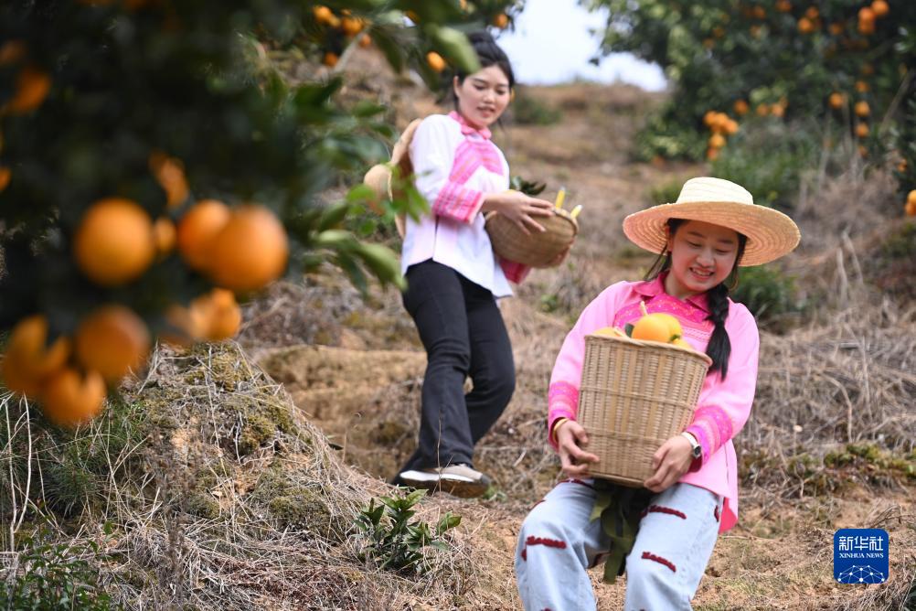 連日來(lái),貴州省黔東南苗族侗族自治州榕江縣2.6萬(wàn)畝臍橙進(jìn)入采摘季,員工忙著(zhù)采摘、打包、搬運臍橙,果園一派忙碌景象。